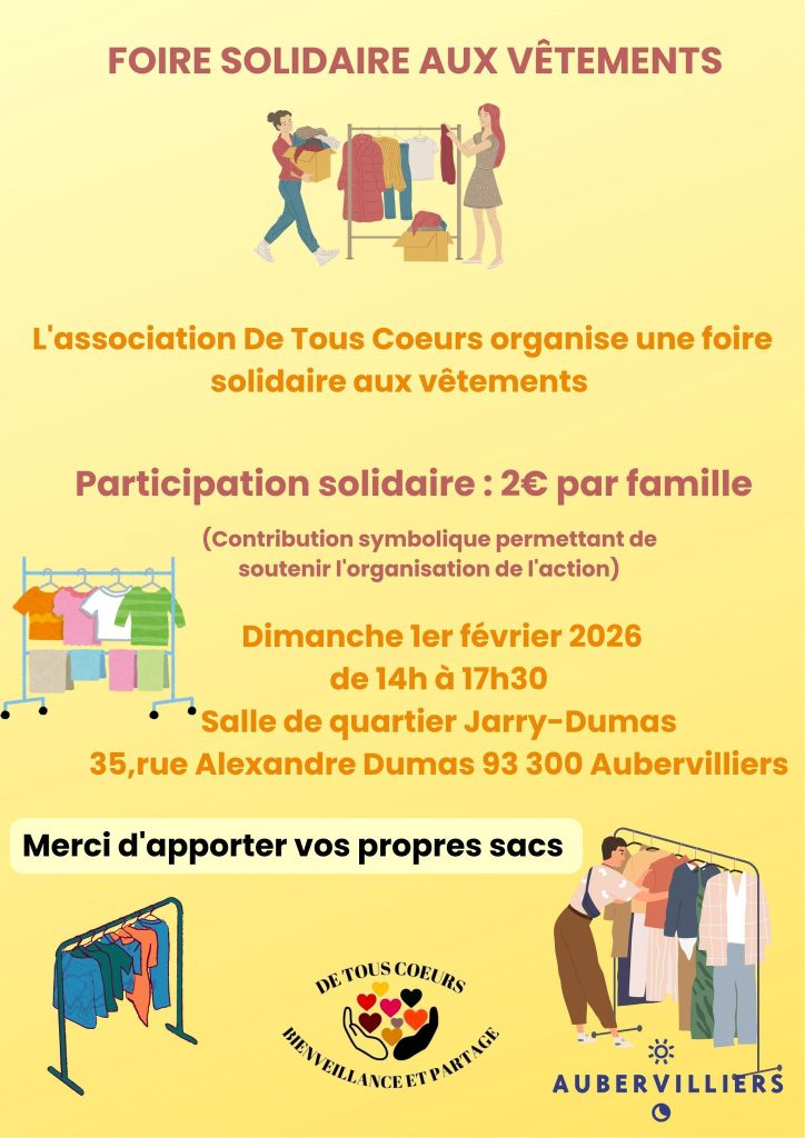 Foire solidaire aux vêtements avec l’association De tous coeurs