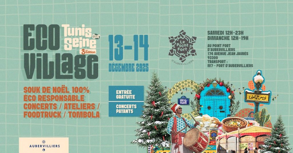 En partenariat avec Le Point Fort d’Aubervilliers, Tunis-sur-Seine revient avec la 3ᵉ édition de son Écovillage de Noël, un espace de rencontres, d’échanges et de découvertes autour des savoir-faire, de la créativité et des initiatives éco-responsables.
