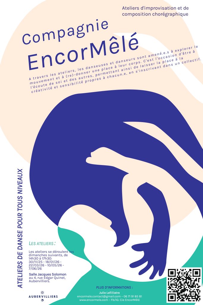 La compagnie EncorMêmé vous propose des ateliers de danse ouverts à tous les niveaux. retrouvez la date des ateliers et les modalités d’inscription sur l’affiche ci-dessus.