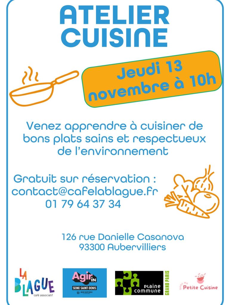 Participez à un atelier de cuisine au café associatif La Blague, jeudi 13 novembre à 10h au 126 rue Danielle Casanova