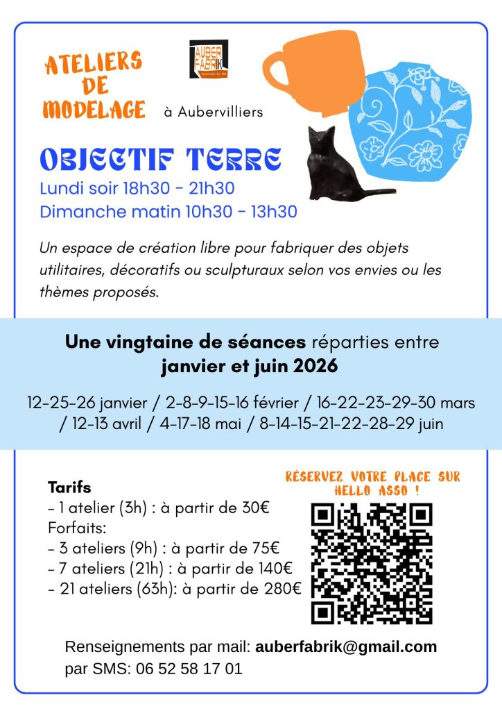 Inscriptions : https://www.helloasso.com/associations/auberfabrik/evenements/cours-lundi-soir-terre