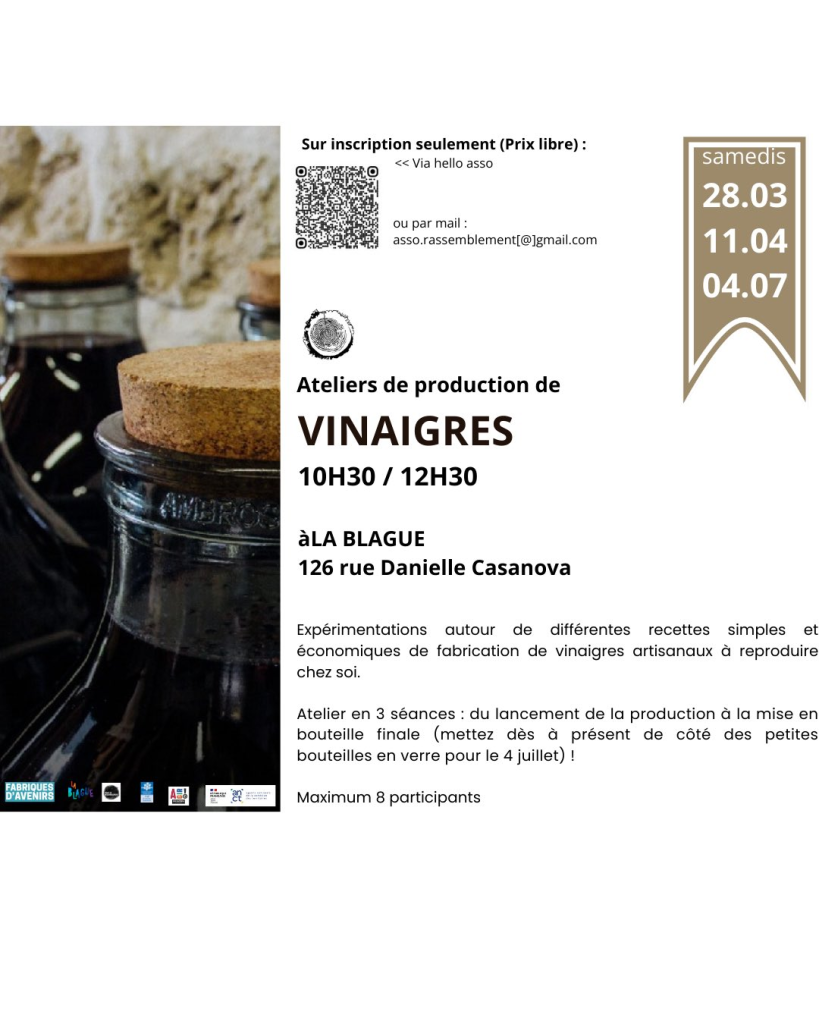 L’association Point de rassemblement vous donne rendez-vous à la Blague pour un atelier de production de vinaigre, le 28 mars / 11 avril et 4 juillet.