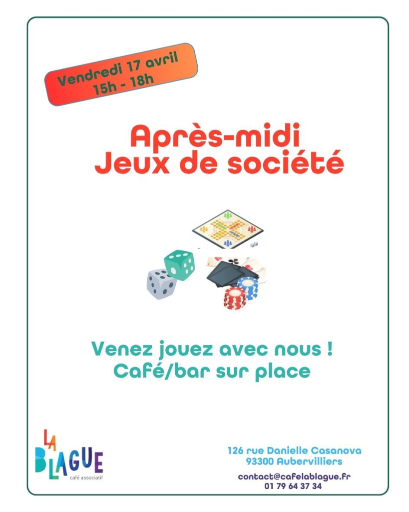 Après-midi jeux de société à la Blague Le café la Blague propose une après midi jeux de société dans ses locaux le vendredi 17 avril.
