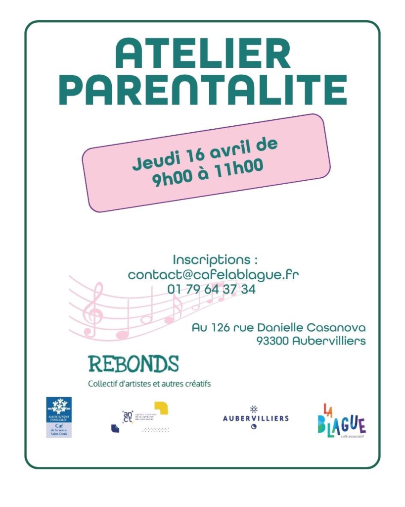 Atelier parentalité à la Blague L’association Rebonds et la Blague vous propose un atelier parentalité le jeudi 16 avril.